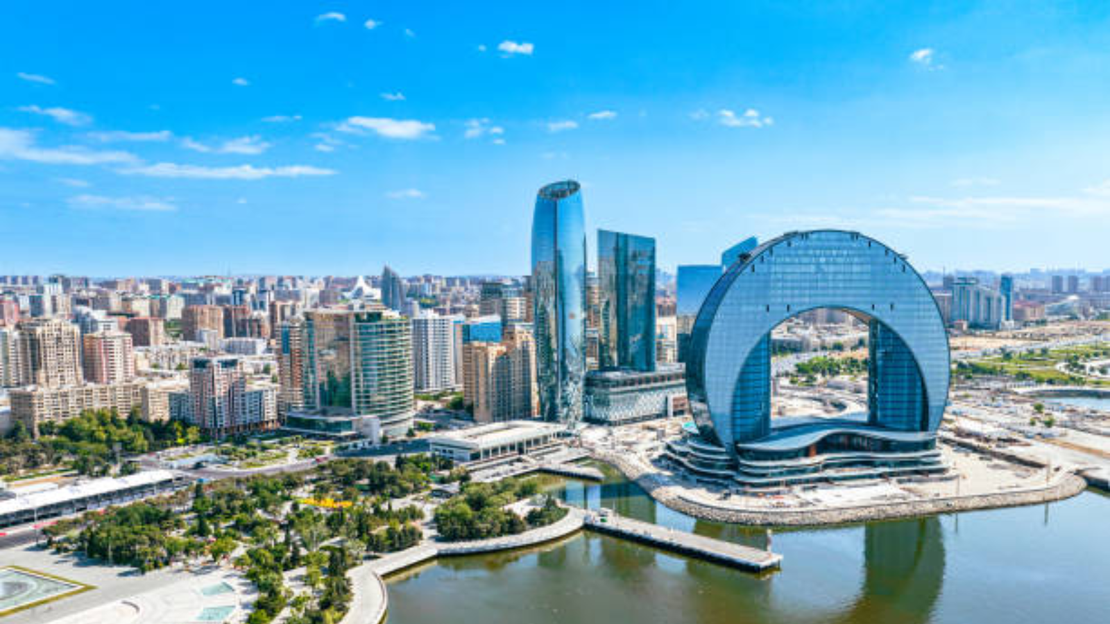 Icherisheher Old City (Palace of Shirvanshahs, Maiden Tower), Nizami Street & Fountains Square; photo at Heydar Aliyev Center; night panoramic drive (Martyrs' Park, National Assembly, Flame Towers, Zaha Hadid center views); overnight.